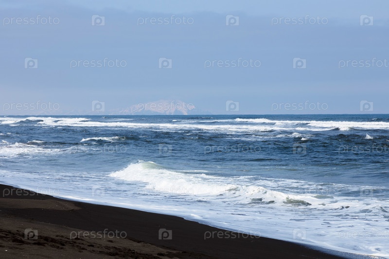 Вид на волны с пляжа Халактир, залив Авача