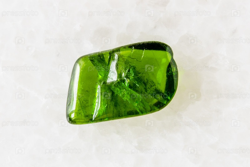 Кристалл диопсида хрома на белом мраморе