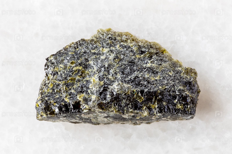 Образец грубой диопсидной породы на белом мраморе