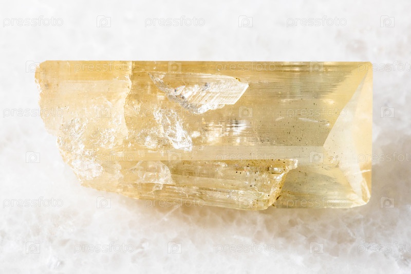 Образец грубого минерального данбурита на белом мраморе