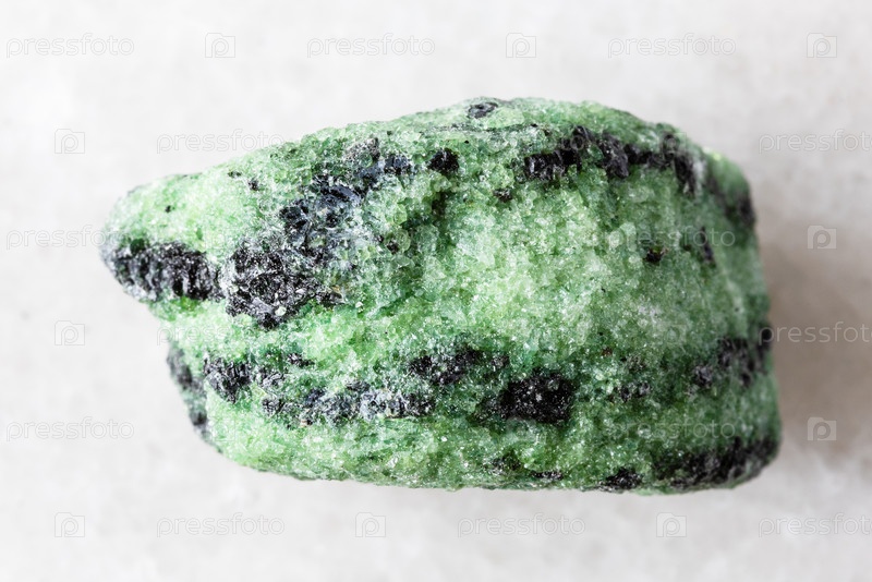 Образец сырого минерального зоозита на белом мраморе