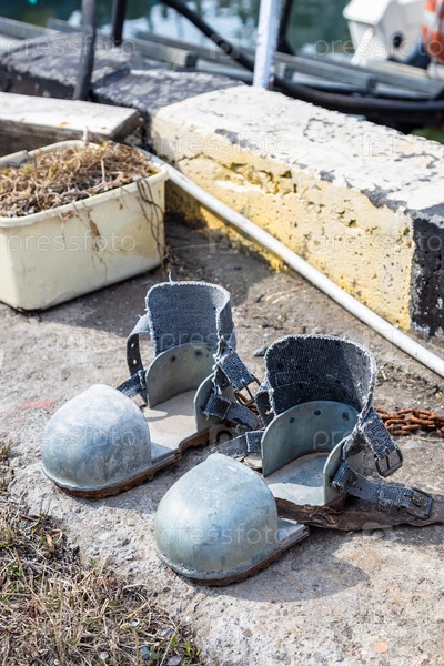 Тяжелые прыжковые сапоги в городском порту на открытом воздухе