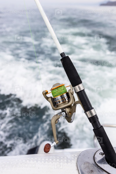 Витящаяся катушка закрывается на рыболовной палочке на лодке