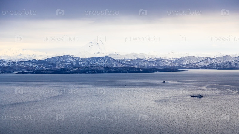 Панорамный вид на залив Авача в вечернее сумерки