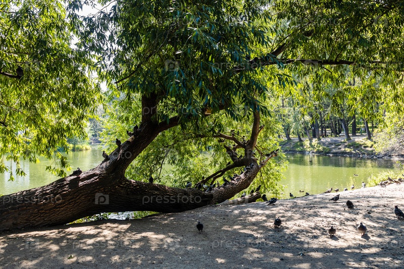 Дерево, лежащее на берегу пруда в Екатеринбурге