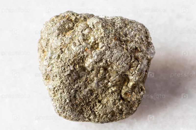 Образец сырой пиритовой породы на белом мраморе