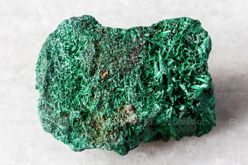 Образец волокнистого минерала малахита на белом