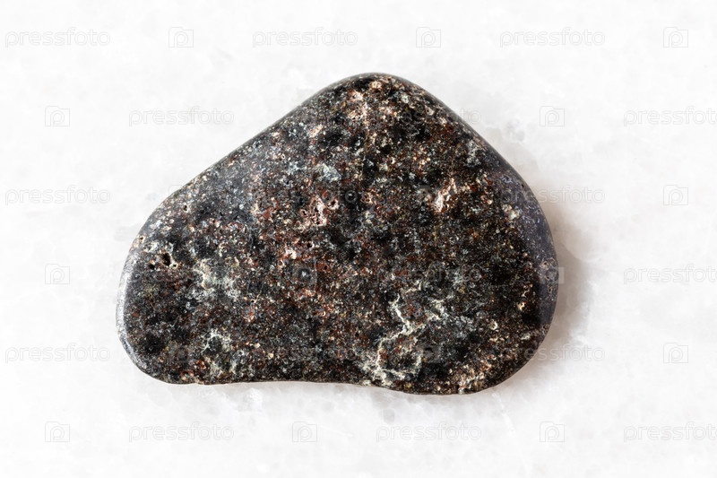 Образец базальтового камня с гематитом на белом мраморе