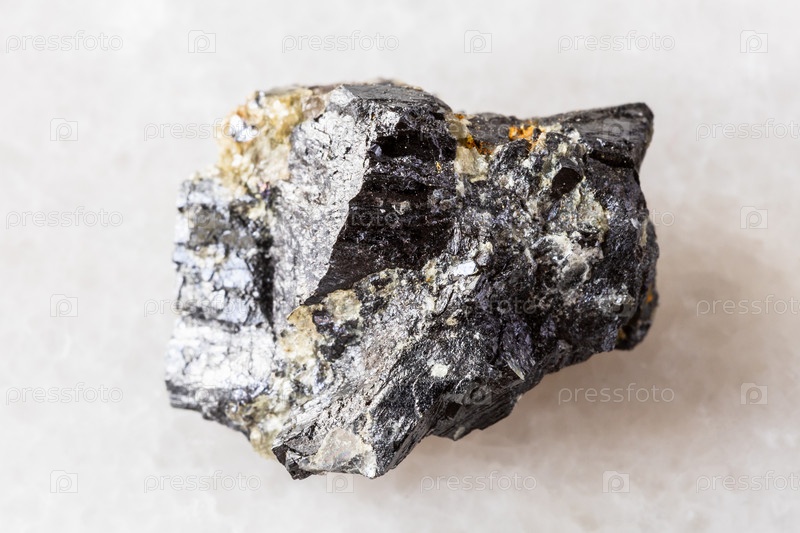 Образец грубого минерального вольфрамита на белом мраморе