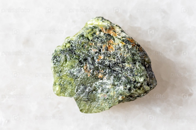 Образец неработающей зеленой минеральной сфены на белом