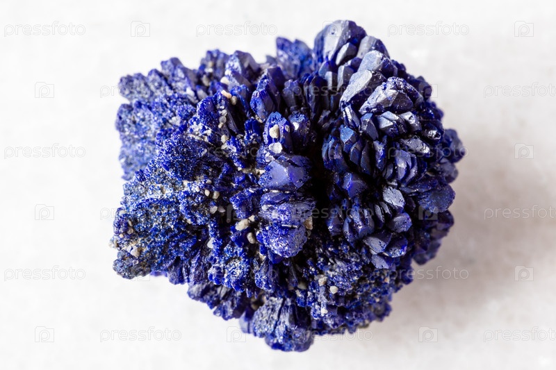Грубый кристаллический азуритовый минерал на белом мраморе
