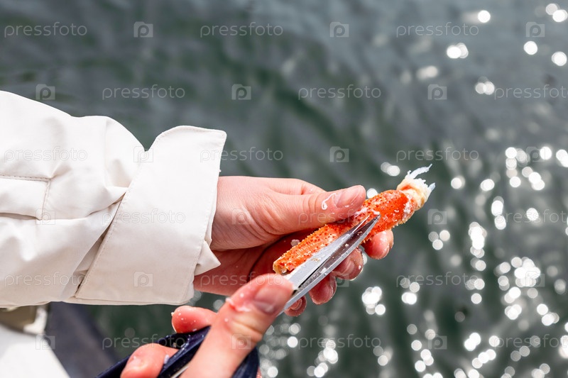 Турист отрезает ногу пойманного краба ногами