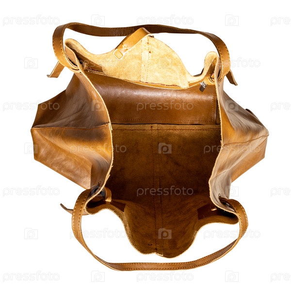 Вид на пустой мягкий кожаный пакет изолированный