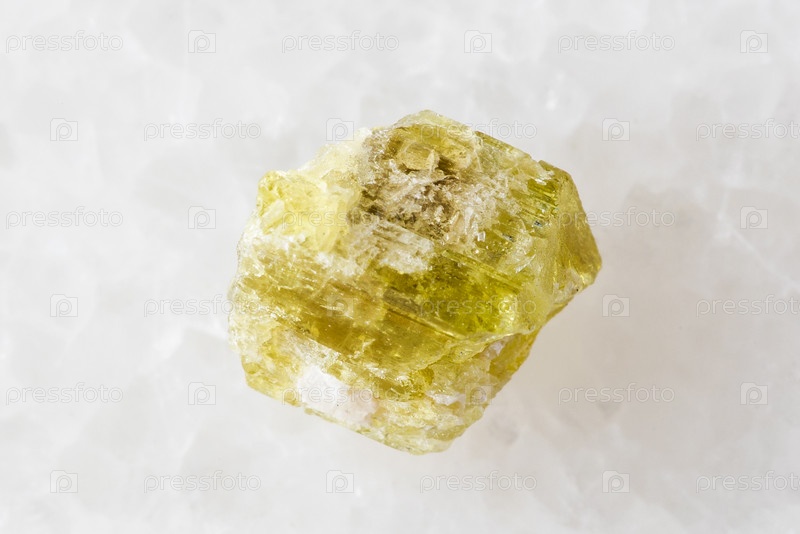 Образец сырого минерала хризоберила на белом мраморе