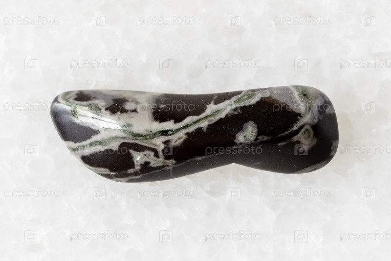 Образец рогового минерала на белом мраморе
