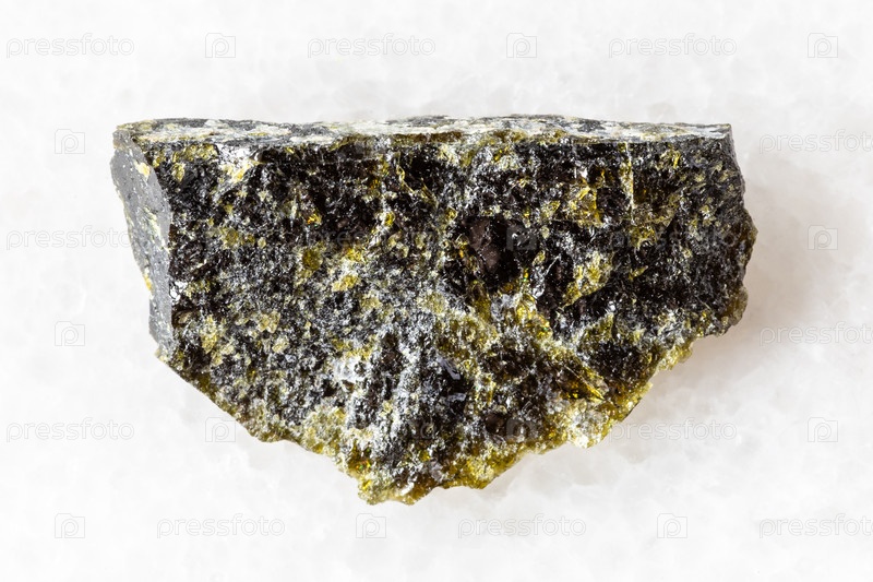 Образец сырой диопсидной породы на белом мраморе