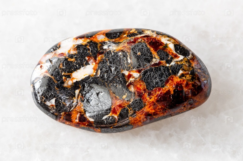 Полированный франклинит и цинцитовые минералы на белом