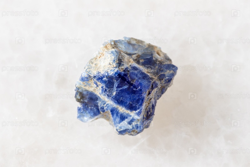 Образец сырого кристалла бенитоита на белом мраморе