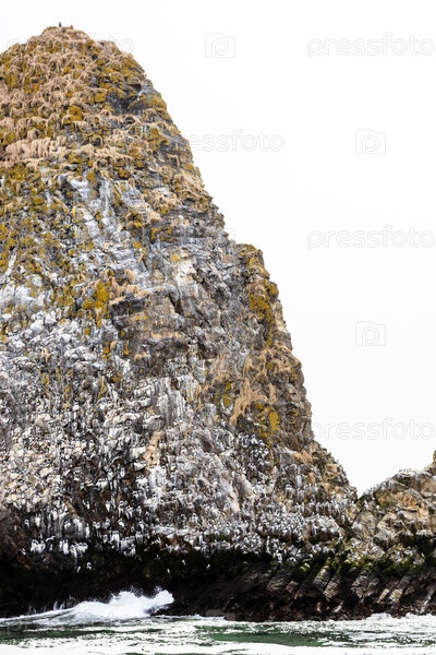 Колония птиц на скале острова Старичкова в Аватче