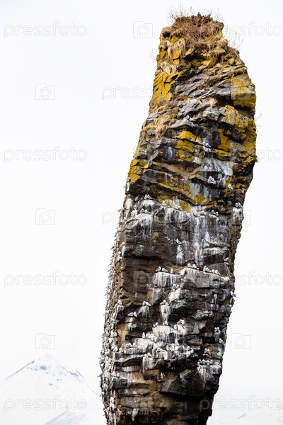 Скала с чайками в Старом заливе Авача Тихого океана