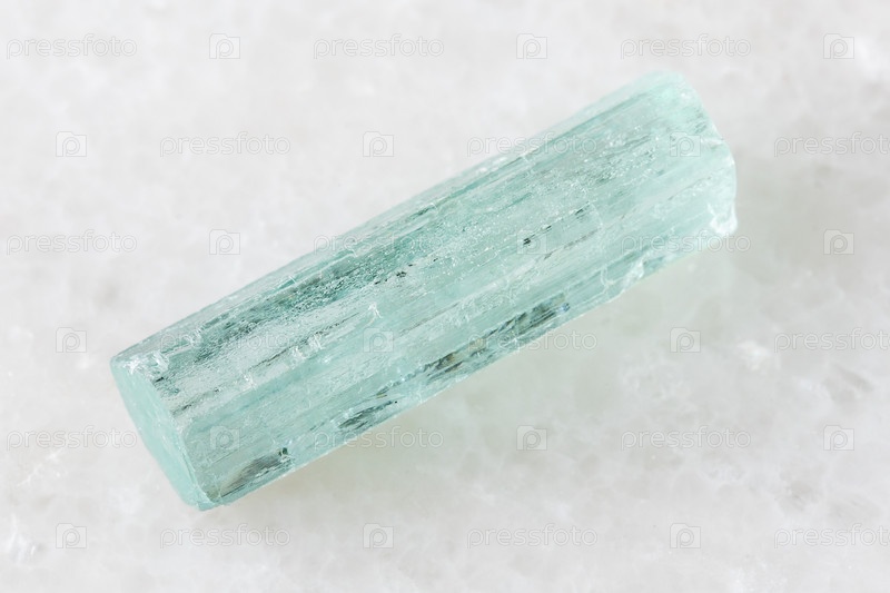 Образец грубого кристалла аквамарина на белом мраморе