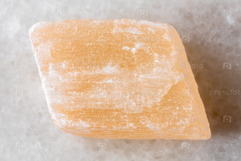 Образец сырой селенитовой породы на белом мраморе