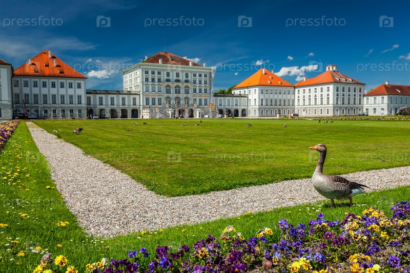 Гусь в саду перед Нимфенбургским дворцом.Мюнхен, Бавария, Германия