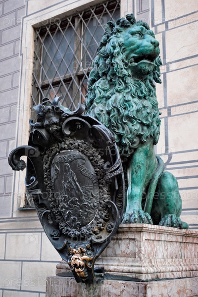 Статуи баварских львов в резиденционном дворце в Мюнхене