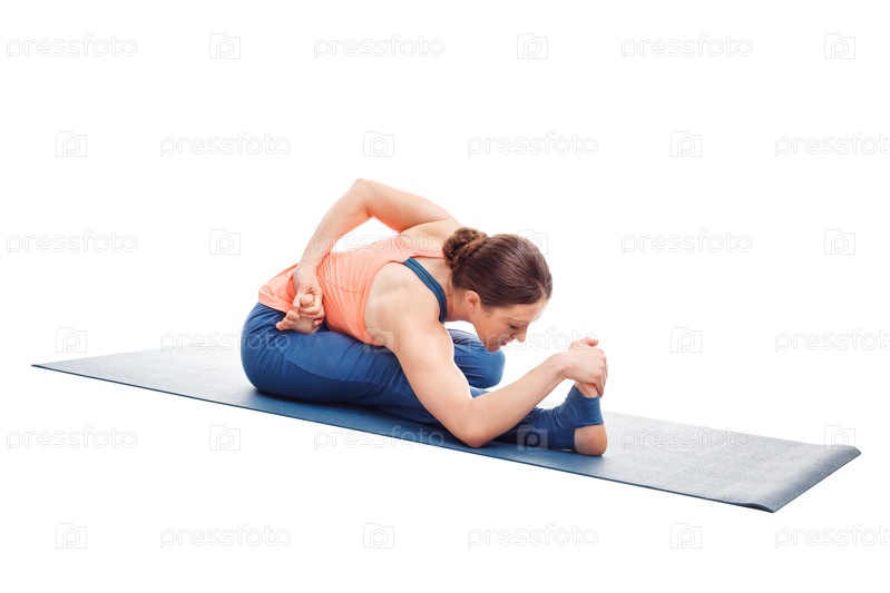 The woman making Ashyabo Vinyas Yoga Pua Ardha Baddha Padma Pashimitana Женщина, делающая Ашьябо Виниас Йогу Пуа Ардха Бадда Падма Пашимитана