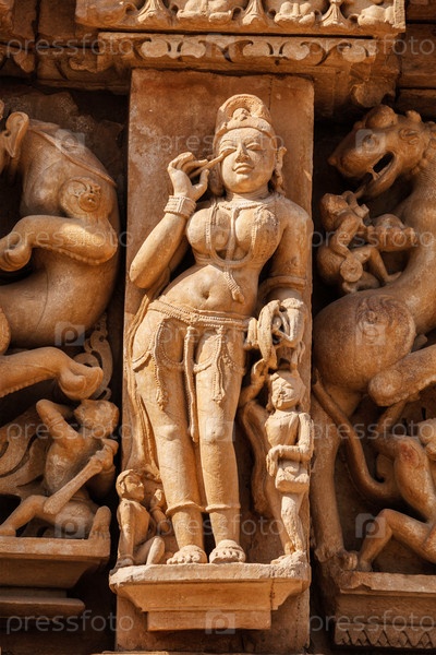 Каменная резьба скульптуры женщины-рельефа в храме Адината, Хаджурахо, штат Мадхья-Прадеш, Индия