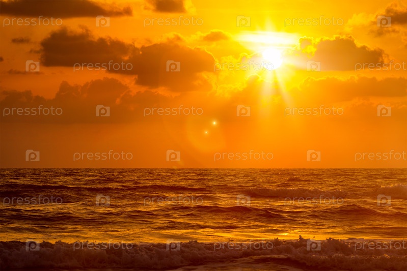 Закат к океану в Багхе, Гоа, Индия