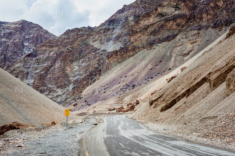 Национальный шоссе NH-1 в Гималаях.Ладак, Индия