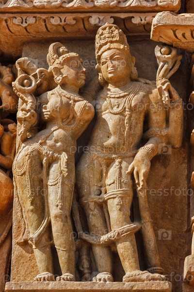 Каменные рельефные скульптуры вырезанного басса в храме Адината, Хаджурахо, штат Мадхья-Прадеш, Индия