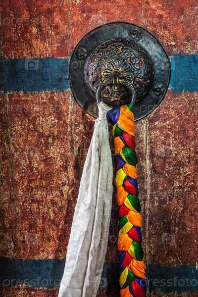 Украшенная дверная ручка ворот Тикси-гумпы (тибетский буддийский монастырь).Ладак, Индия