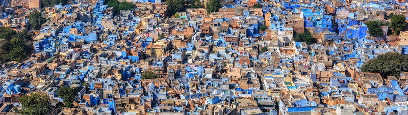 Панорама с воздуха Джодхпура, также известного как Голубой город из-за ярких браминских домов вокруг форта Мерангарх