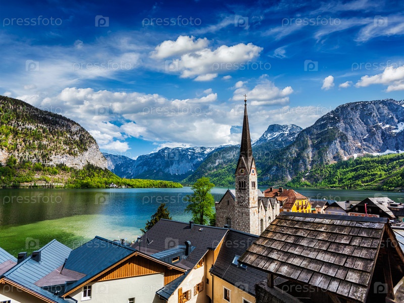 Австрийское туристическое направление Деревня Халлштатт на Холлстаттера Смотрите в австрийских Альпах. регион Зальцкаммергут, Австрия