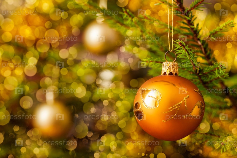 Рождественский фон - украшение рождественской елки на декорированной рождественской елке с размытыми туманными огнями боке и кописпалом