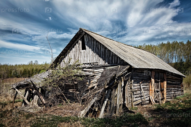 Старый заброшенный сельский дом в деревне