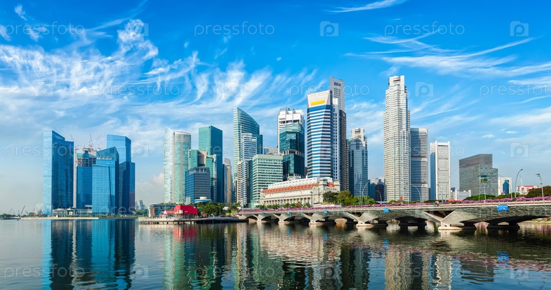 Панорама делового района Сингапура над Марина-Бей