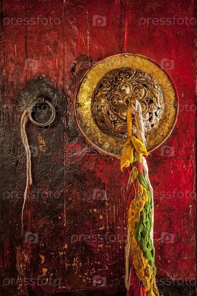 Украшенная дверная ручка ворот Гемис-Гомпы (тибетский буддийский монастырь).Ладак, Индия