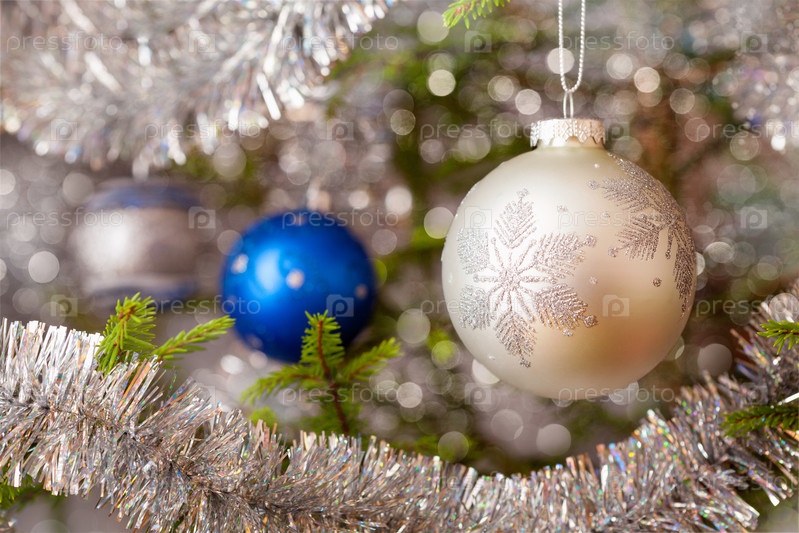 Рождественский фон - украшение рождественской елки на декорированной рождественской елке с размытыми туманными огнями боке и кописпалом