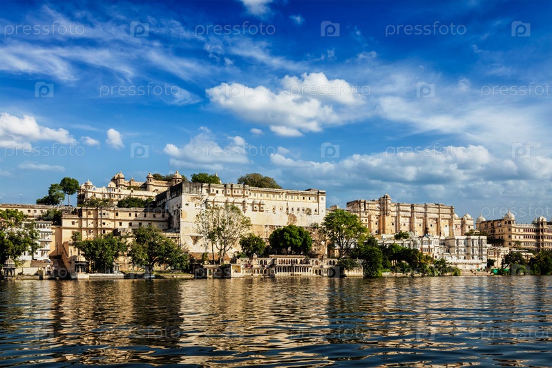 Городский тип дворца с прудом.Удайпур, Раджастхан