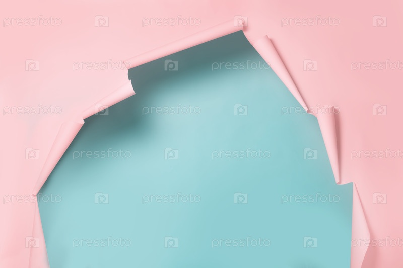 Розовый бумажный фон, с которого видна голубая стена. фотостудия