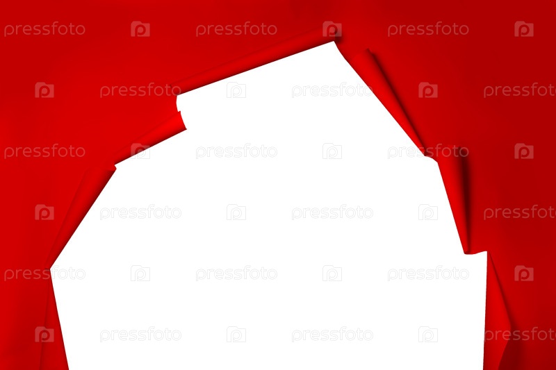 Красный разорванный фон бумаги, с которого видна белая стена. фотостудия