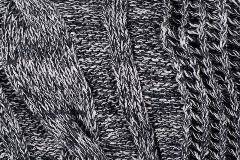 Серый фон был плотно вязан белой и черной нитью. Часть трикотажного свитера