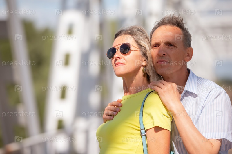Мужчина и пожилая женщина стоят рядом друг с другом.Они оба носят солнцезащитные очки, а мужчина держит руку женщины.Эта сцена является выражением любви
