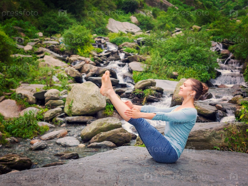 Женщина, выполняющая Ашьябо Виньяс Йогу Асаина Навасана - a bat appeal