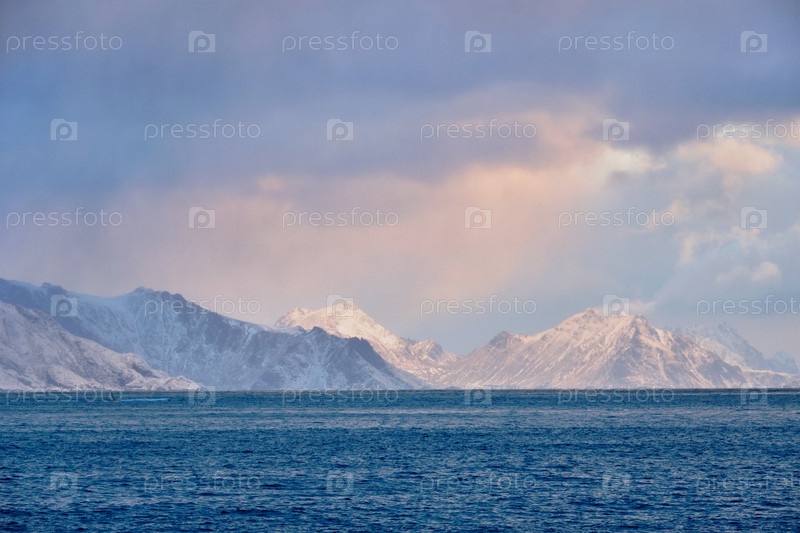 Норвежский фьорд на рассвете.Острова Лофотен, Норвегия