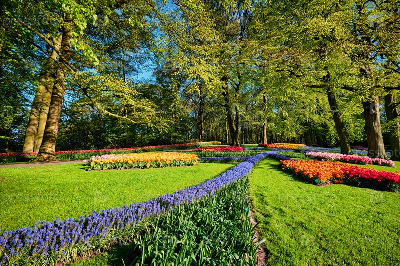 Цветущие клумбы розовых тюльпанов в цветочном саду Кеукенгофа, также известном как Сад Европы, является одним из крупнейших цветочных садов мира и популярной туристической достопримечательностью