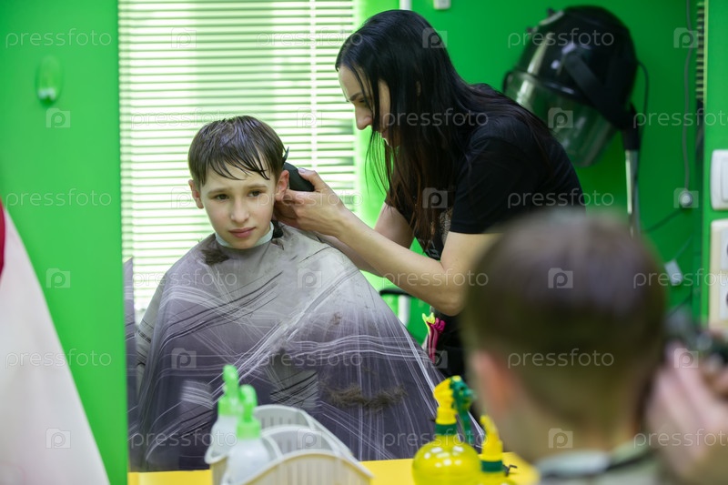 У мальчика стрижка в парикмахерской